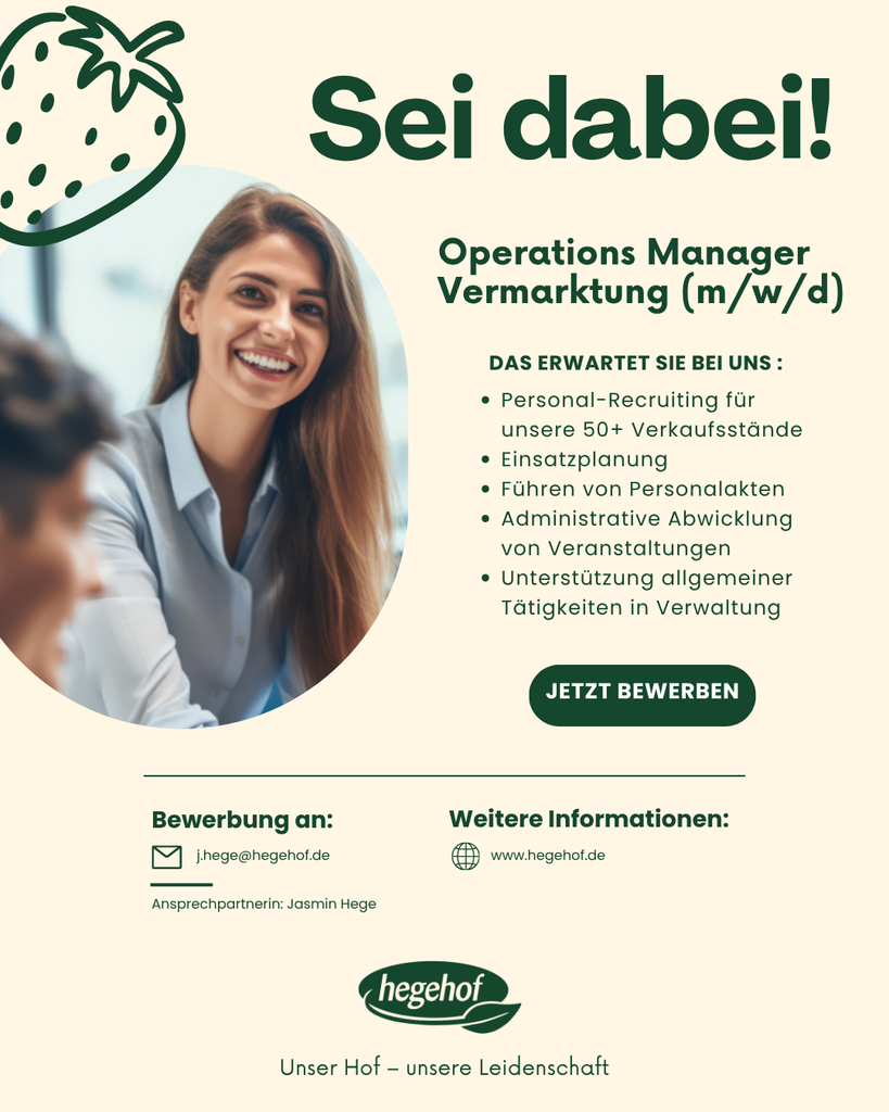 Wir suchen ab sofort eine/n motivierte und engagierte Operations Manager Vermarktung (m/w/d).