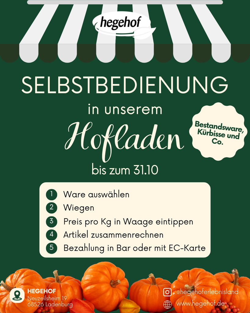 Auch wenn die Saison vorbei ist, gibt es noch die Möglichkeit unsere Produkte in unserem Hofladen per Selbstbedienung zu kaufen. Neben unseren hauseigenen Manufakturprodukten, gibt es noch verschiedene Kürbisse zu kaufen.