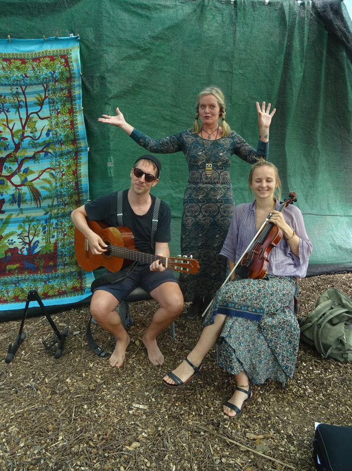 Ab Samstag, den 18. April, öffnet Märchenmuhme Hannah (Hannah A. Ehleben) wieder die Zeltplanen für alle kleinen (ab ca. 4 Jahren) und großen Märchenfreunde. Unterstützt wird sie wie immer von ihren musikalischen Weggefährten: Klangkauz Manu (Manuel Stegmüller, Gitarre & Gesang) und Goldkehlchen Jule (Jule Ehleben-Mehtsun, Gesang, Cello, Percussion).
